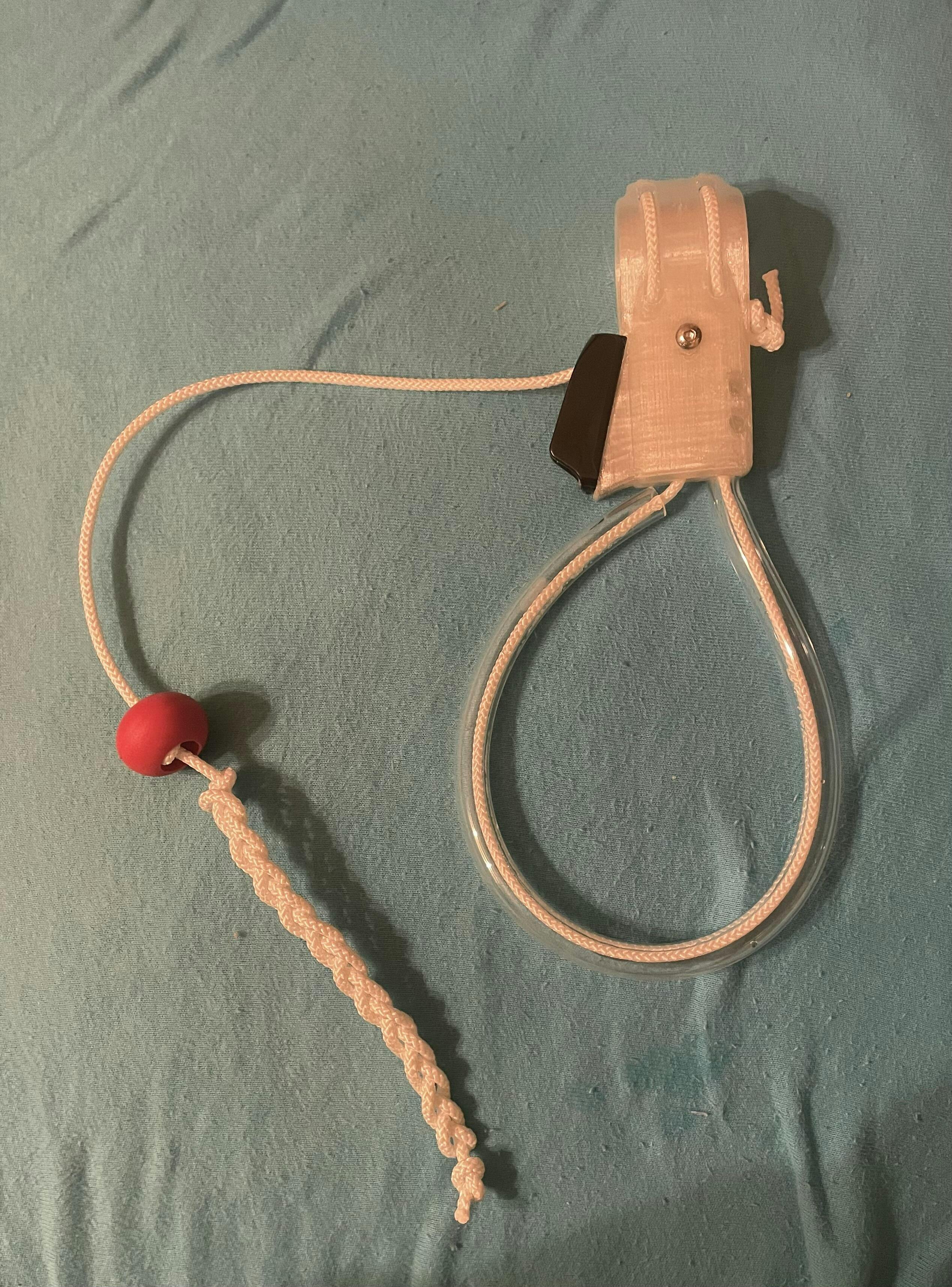 The last order was the new Mono Harness Line Race, which is a big step foward. It enables a shorter total system length, carries a smaller diameter rope and a bigger diameter tube. This makes the handling much easier regarding installation or swapping, as the smaller diameter rope feeds easily through als channels within the system, so that no boom or grip detachment gets necessary for installation or removal. Only item I added is a stopper ball and the remaining excess rope I braided for a perfect grip section